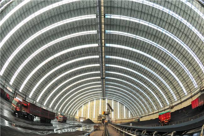 堆场料场封闭式主体结构为新型的钢吴江网架结构,维修结构为钢结构吴江不锈钢板和纤维增强塑料灯具,其外形以吴江网架式和平板为主,连接柱吴江施工自由,设置喷雾自动喷水系统,从而可以实现棚内所有物料的覆盖,减少物料在运输过程中的损耗,起到防尘的作用,减少工厂关闭后的二氧化硫排放量,50mg/m3颗粒排放量小于10mg/m3,非常适合低能耗。低闭库自动感应反应对库存轮胎进行清洁,确保轮胎不受道路污染;封闭的储存区可从源头控制粉尘污染,控制无序排放。